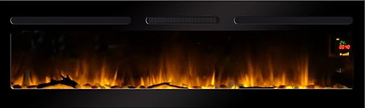BALDERIA Leif 60″ Electric Fireplace | Wall Mounted Electric Fireplace with 3D Flame Effect | Heating 2000W, LED Lighting | Built-in Fireplace with Remote Control, Timer &…