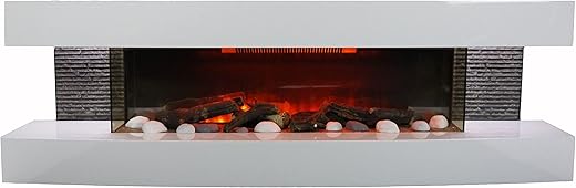 Chemin’Arte Lounge 3XL Electric Fireplace Flame Effect LED Wall Fireplace 150 cm White Designed in France