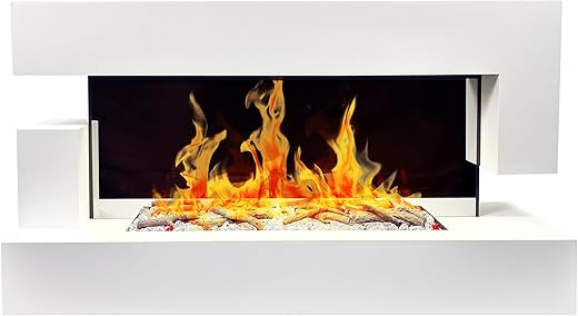Chemin’Arte – Cheminée Électrique LEDs Murale Design Quartz 120 cm – Blanche – Effet Flammes – Conçue en France – Garantie 2 Ans