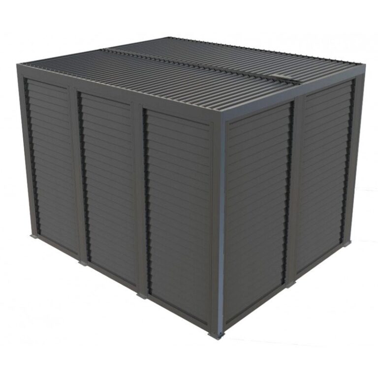 Pergola bioclimatique en aluminium gris anthracite 400x400cm avec lames grises SEYCHELLE – Essency