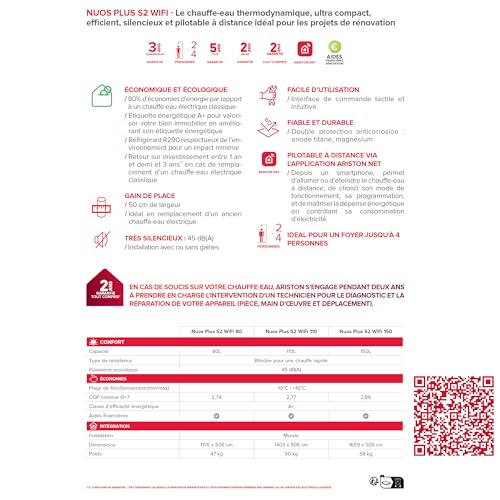 Ariston NUOS PLUS WIFI – Thermodynamic water heater 150 litres – 80% energy savings – Photovoltaic function – Designed and manufactured to be installed in France