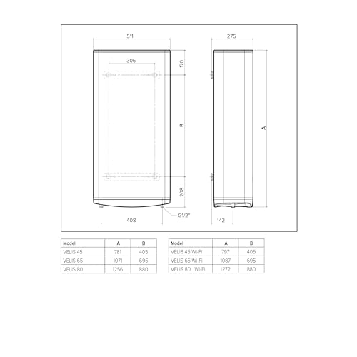 Ariston VELIS DUNE 80 Litres – Ultra-Flat Electric Water Heater – 13% Energy Saving – Designed and manufactured to be installed in France.