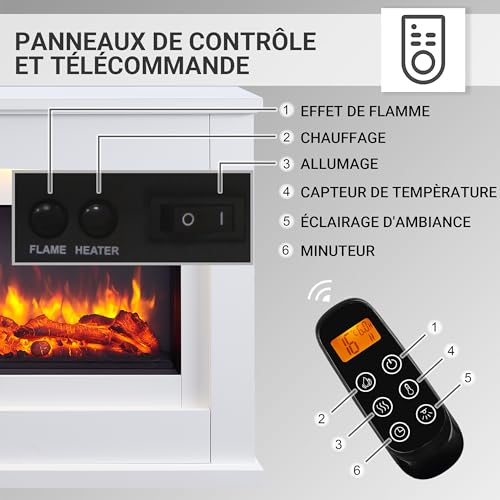 - COMME UN VRAI FEU : la flamme en 3D et la représentation naturelle du bois et des braises donnent à la cheminée électrique un effet réaliste. La détente parfaite après une longue journée.