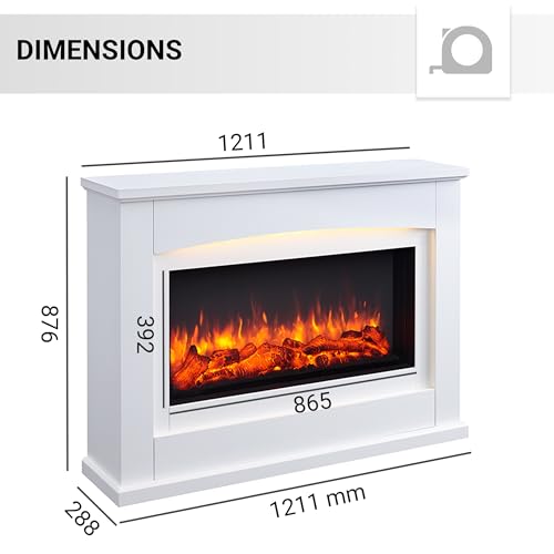 BALDERIA cheminée électrique Argon | Cheminée de Sol avec Effet Flamme 3D | Chauffage électrique 2000 W | Foyer sur Pieds avec télécommande, minuterie, Thermostat | Blanc