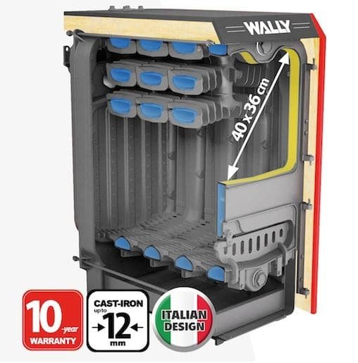 Toujours dans le but d’offrir un rendement important et d’en faire un modèle économique, la chaudière Wally S est équipée d’une très bonne isolation du corps de chauffe ainsi qu’un isolant en vermiculite positionné derrière la porte de chargement .