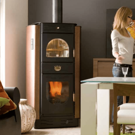 Découvrez la chaudière bois Ramata de chez Clementi, pour chauffage central avec ECS et four de cuisson, une combinaison idéale de chauffage et de cuisson. Equipée d’un four à deux niveaux, elle permet de cuisiner à des températures allant jusqu’à 300 °C.