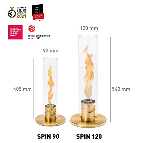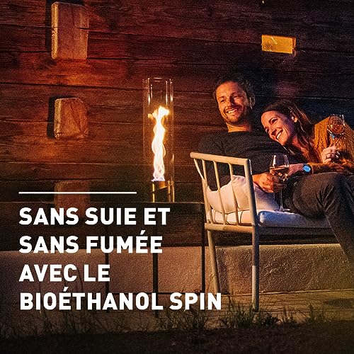 • 🔥 UN ÉCLAIRAGE INNOVANT : SPIN est une cheminée de table alimentée au bioéthanol avec un fascinant tourbillon de flammes dans un cylindre en verre décoratif et avec un pied solide. SPIN crée ainsi sur votre table une ambiance de feu de camp. Le gel combustible doit être commandé séparément