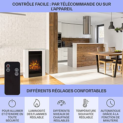 - ATMOSPHÈRE CHALEUREUSE ET ROMANTIQUE : Cette élégante cheminée électrique fait apparaître des illusions de flammes aux effets réalistes. La lumière douce imitant des flammes vacillantes et des braises crépitantes diffusent une ambiance intimiste.