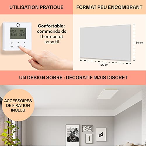 - UNE TAILLE PEU ENCOMBRANTE : Dotés d’un magnifique design qui met en valeur n’importe quelle pièce, notre radiateur electrique sans cadre prend très peu de place une fois monté. Le cordon d’alimentation peut être caché derrière l’appareil.