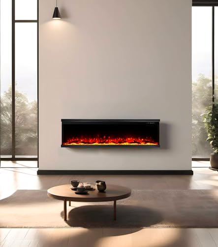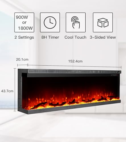 - DIMENSIONS : Dimension totale : 152.4cm* 20.1cm*43.7cm(60″×7.9″×17.2″). Vue avant de la flamme : 31.54cm*152.4cm(12.4″×60″). Vue latérale de la flamme : 10.63cm*35.2cm(4.2″×13.9″). Minuterie et température : 62-82℉/17-28℃, 0-8H.