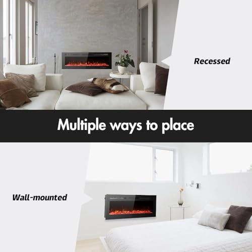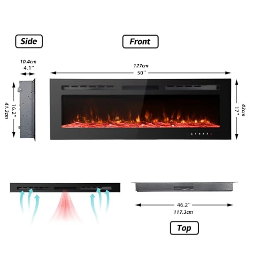 - 🔥【Design attrayant et pratique】 127cmL x 43cmH x10,5cmD, L’épaisseur de la cheminée électrique améliorée est réduite à 10,5cm et ne sera pas gênante sur le mur. Et il fonctionne de la même manière que l’ancien.Devant la cheminée électrique, nous ajoutons deux entrées d’air pour assurer une entrée d’air rapide.