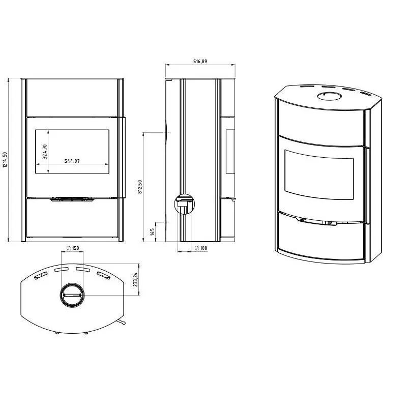 Poêle à bois en acier – 7.6 kW – Étanche – Accumulateur de chaleur