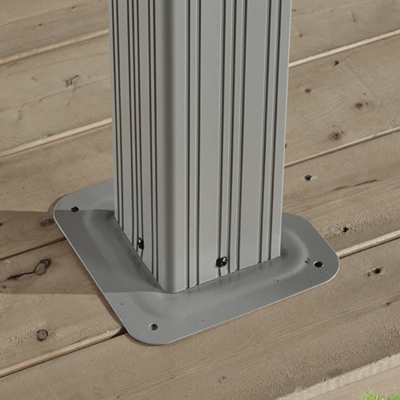Cette magnifique pergola autoportante Messina couvre plus de 17m² pour accueillir un salon de jardin ou pourquoi pas un spa ou un jacuzzi. Elle est réalisée en aluminium pour la structure et en acier galvanisé pour la double toiture.